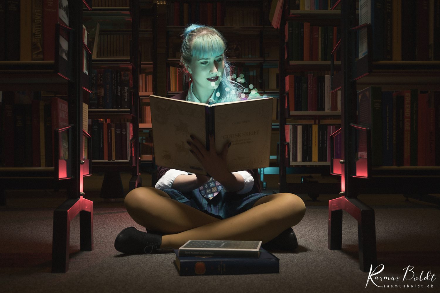 Her er det Boline Storm der har fundet noget god læsning på biblioteket (blikfang)